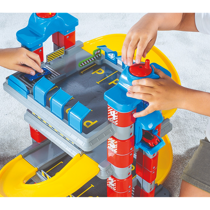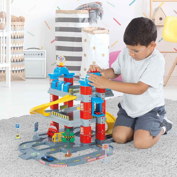 Ignite your child's creativity, designed to provide hours of engaging and imaginative play. Available in three- and four-level versions, these vibrant garages feature interactive elements such as working elevators, ramps, car washes, and petrol stations, allowing children to build stories and develop motor skills while having fun.
