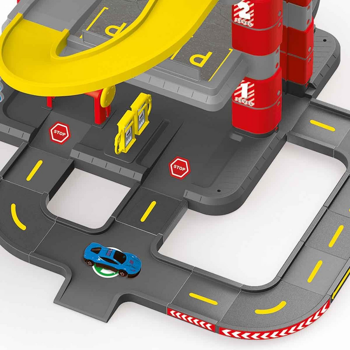 - Features: Working/manual elevator, ramps, twisting tracks, car wash, petrol station/pumps
