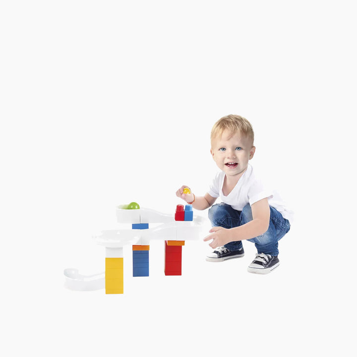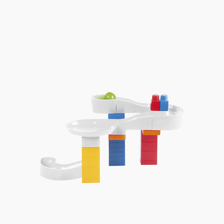 - Includes 41 colorful, easy-to-grip pieces for building towers, slides, and winding tracks
