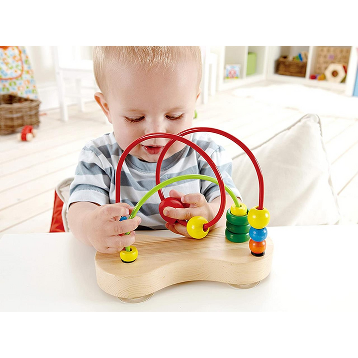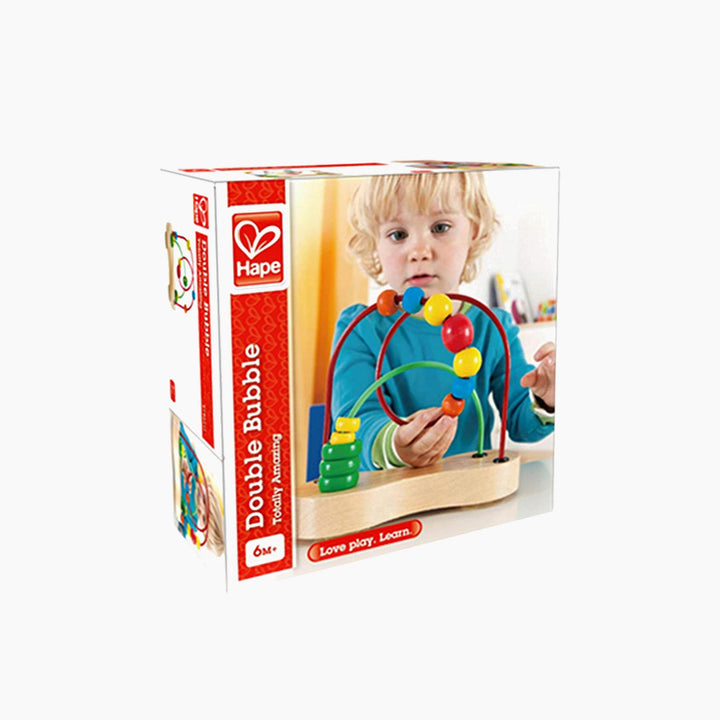 Elevate your child's playtime with the Hape Double Bubble, a timeless wooden bead maze designed to captivate and educate toddlers. This exceptional educational toy combines vibrant colors and intricate movement to enhance early skill development. Ideal for children aged 6 months and up, it encourages exploration in movement, color, and coordination, fostering both fun and developmental growth.