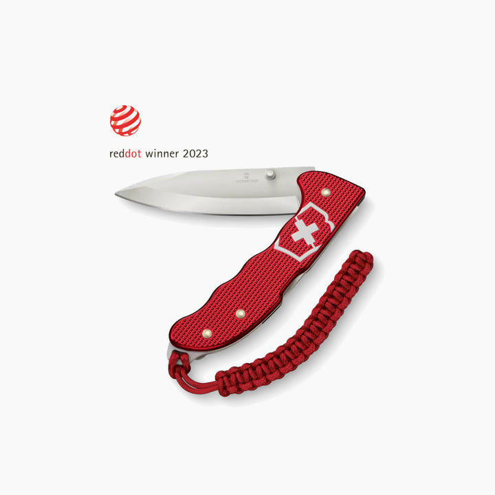 Experience unrivaled precision and elegance with the Evoke Alox Red Folding Knife. This versatile tool combines bold aesthetics with cutting-edge functionality to deliver exceptional performance in any setting. Its striking, lockable silver drop-point blade offers enhanced stability, ensuring reliable use. A removable thumb stud provides effortless, seamless opening, making it an ideal component of your everyday carry essentials. Crafted in Switzerland from robust Alox material, this knife is engineered for durability and longevity.