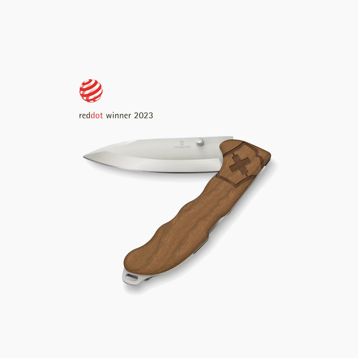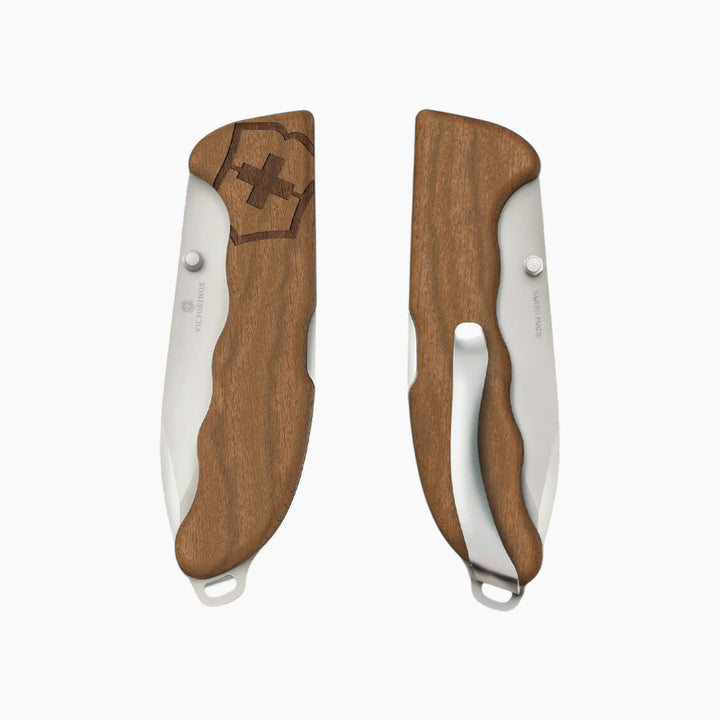Discover the perfect blend of style and functionality with the Evoke Walnut Wood folding knife. Crafted for both everyday carry and outdoor adventures, this Swiss-made knife features a durable lockable blade, ensuring stability under pressure. Its elegant walnut-wood scales are not only unique but also provide a comfortable grip. Designed with versatility in mind, it includes a removable thumb stud for easy opening and a removable carry clip for convenient portability.