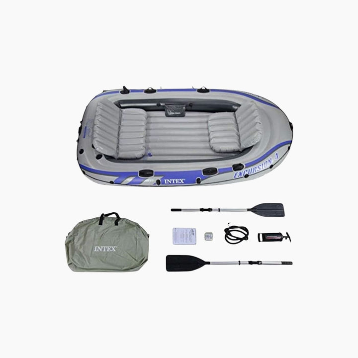 - Includes: 2 x 137 cm (54") aluminum oars, high-output hand pump, repair patch kit