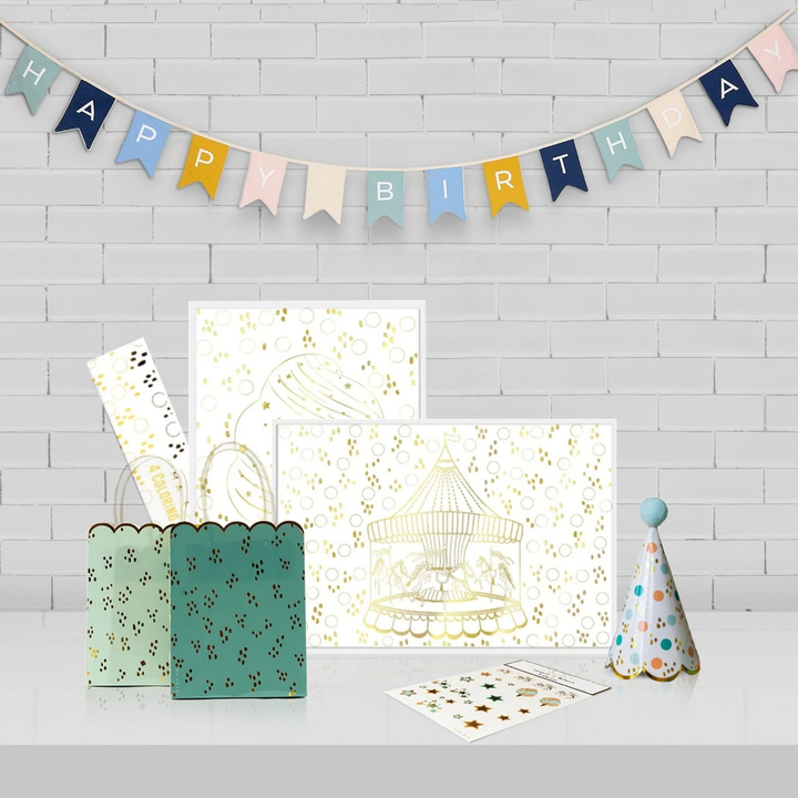 - 4 exclusive coloring sheets featuring carousel and cotton candy designs