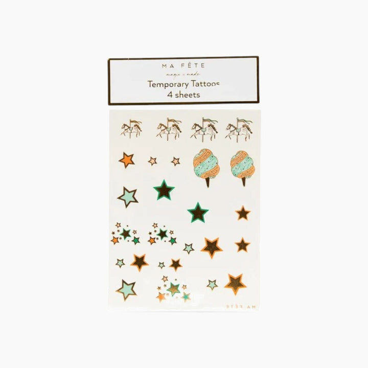 - 4 sheets of temporary tattoos with shimmering gold foil accents