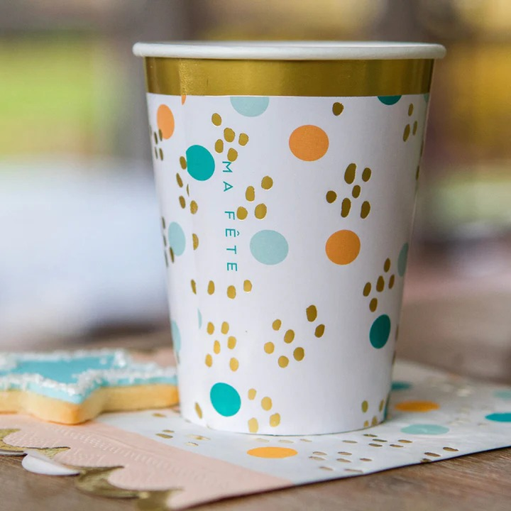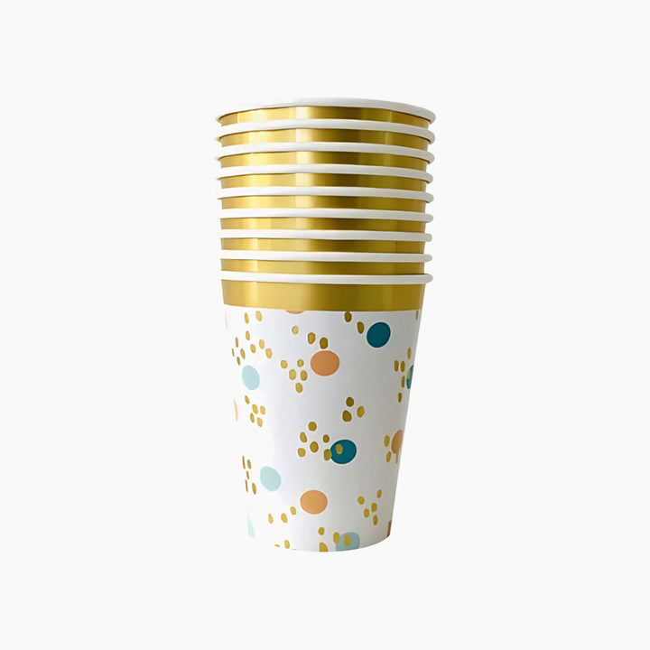 - Durable cups featuring elegant golden polka dots, perfect for serving party beverages.