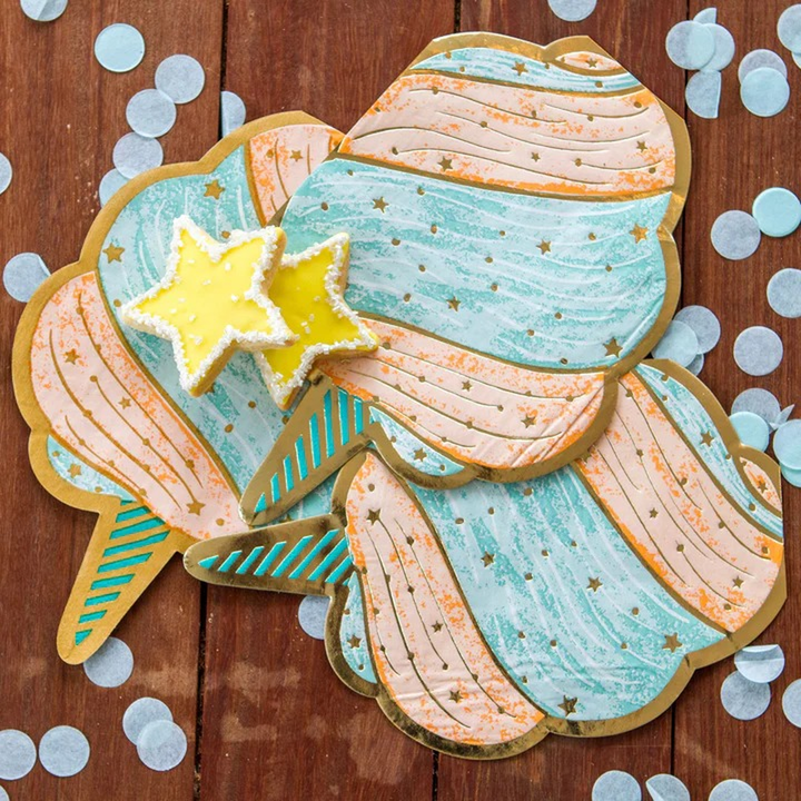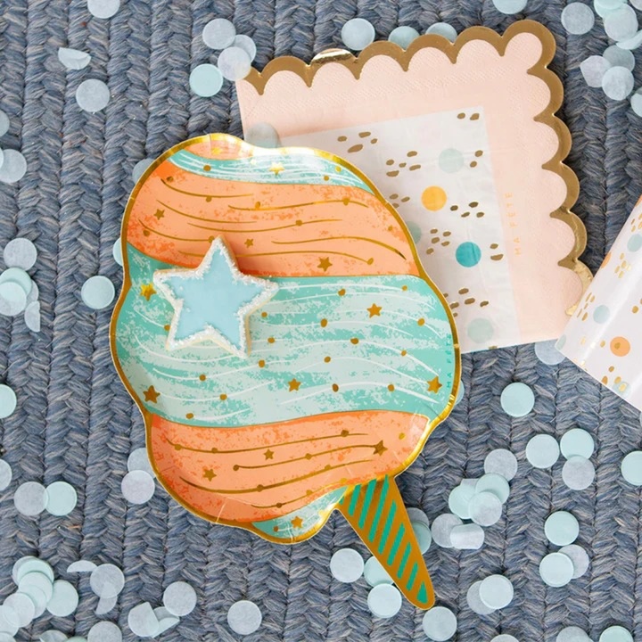 - Charming cotton candy-shaped plates add a playful touch to your table setting.
