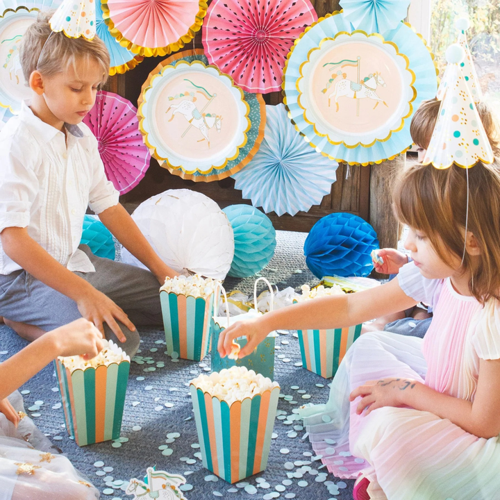 Transform any gathering into a whimsical celebration. This enchanting set captures the playful spirit of a carnival, featuring delightful cotton candy-shaped plates, starry napkins, polka dot...