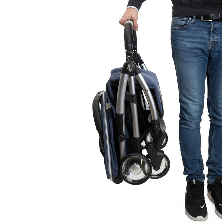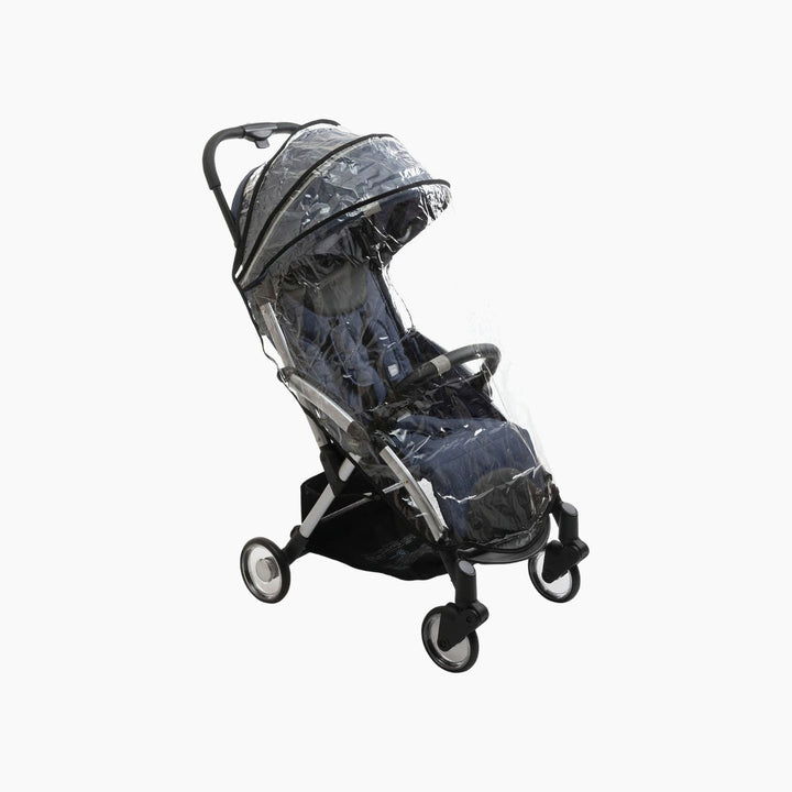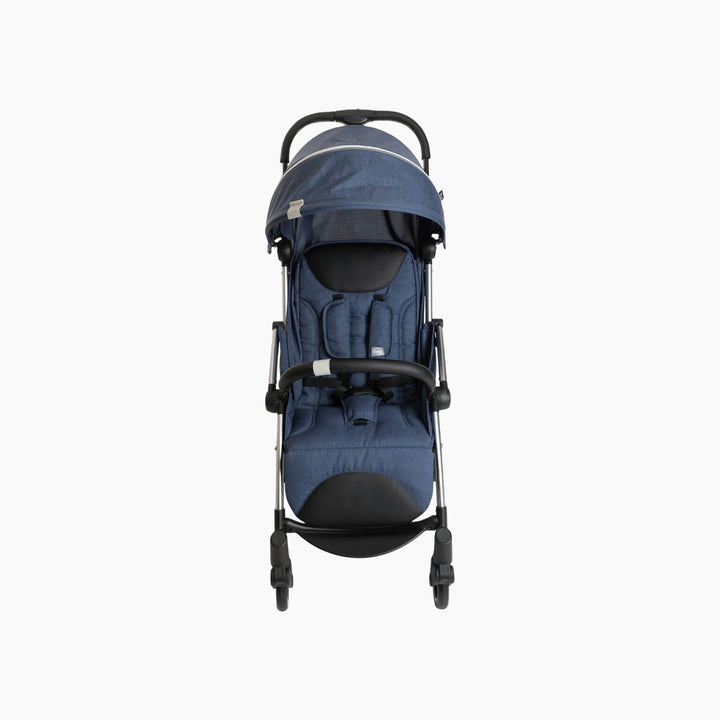 • Travel effortlessly with a compact, stylish, and modern stroller design featuring anodized frame, faux leather details, and transparent polycarbonate wheels.