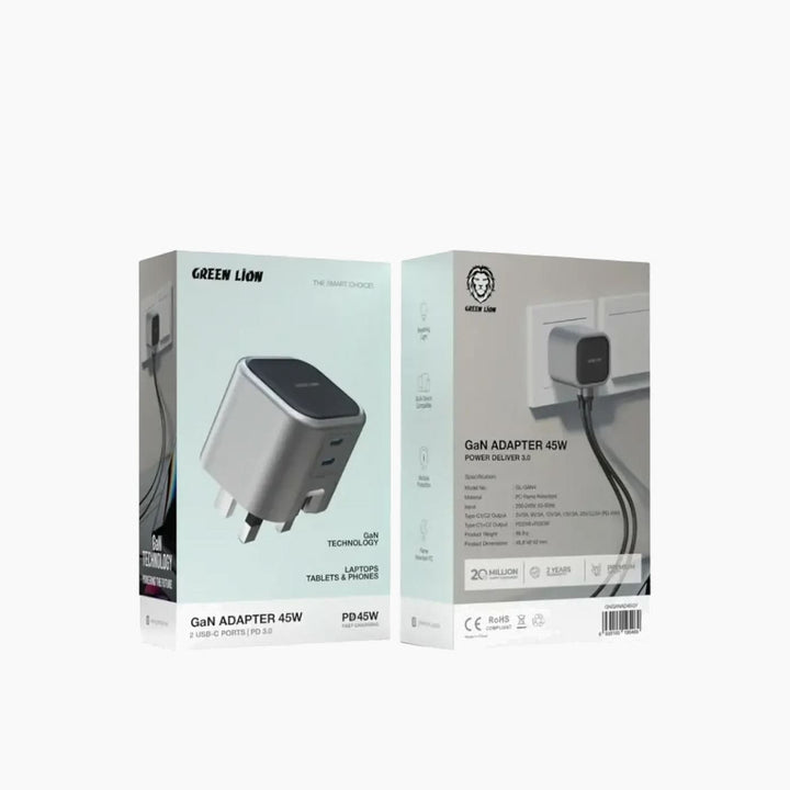 Green Lion GaN Adapter 45W 2 USB-C Ports PD 3.0