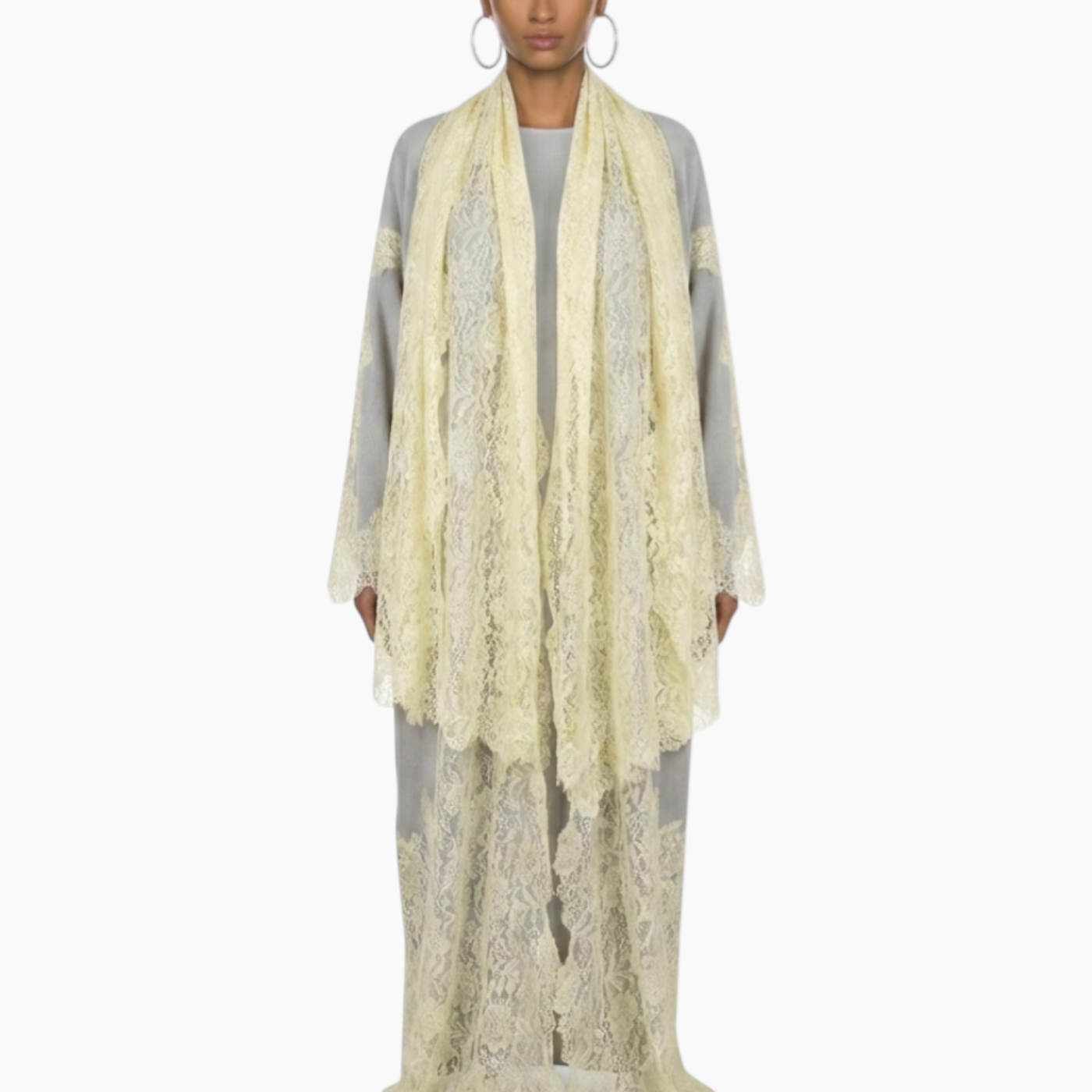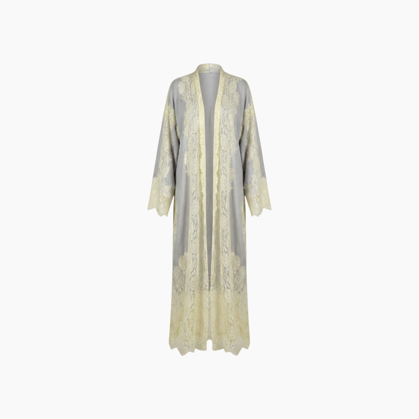 Grey Modest Lace Trim Open Abaya with Soft Ivory Accents( Default Title ) - https://shophuna.com/products/grey-modest-lace-trim-open-abaya-with-soft-ivory-accents-1003?variant=53934982758684