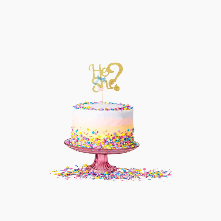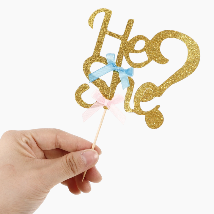 Inspired by the classic “He or She?” moment, this cake topper adds a playful, picture-perfect touch to your celebration. Its simple statement turns your dessert into the centerpiece, inviting smiles, guesses, and cheers.