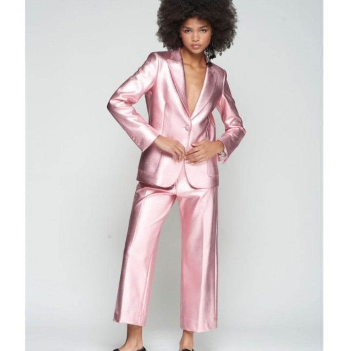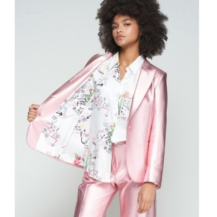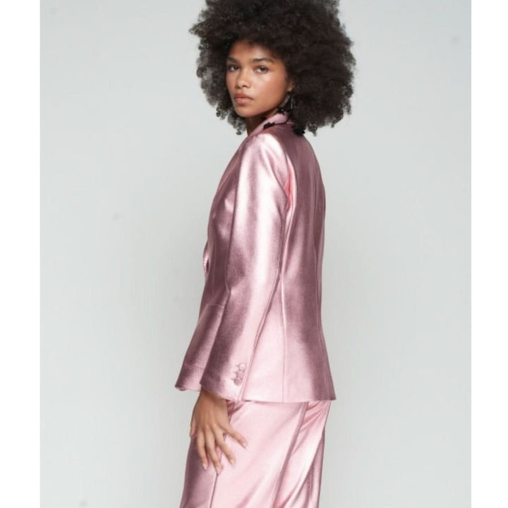 A statement piece that blends modern elegance with a touch of bold glamour. Crafted from a shimmering metallic-effect fabric, this jacket adds instant sophistication to any outfit while maintaining a comfortable and flattering silhouette. Perfect for both formal and chic casual looks, it’s designed to stand out with subtle detailing and a radiant finish.