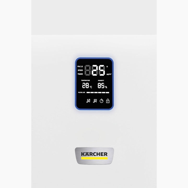 - Activated carbon fill and a display that indicates air quality in alphanumerical terms, showing PM2.5 particles in µg/m³.