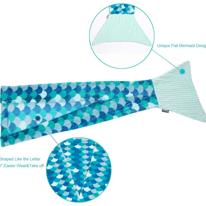- Wearable design with a mermaid tail adds fun and imagination to lounging.