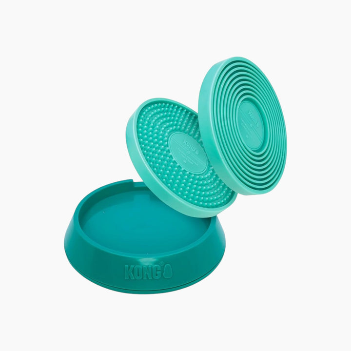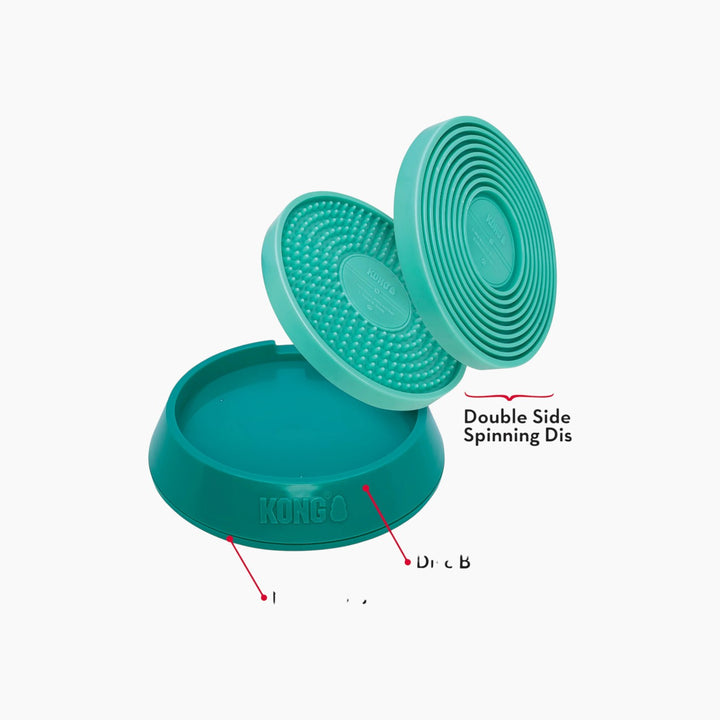 - Design: Double‑sided textured lick pad with raised nubs and a rotating disc on a weighted non‑skid base.
