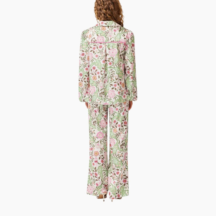 - Set Includes: Long-sleeve blouse and wide-leg pants