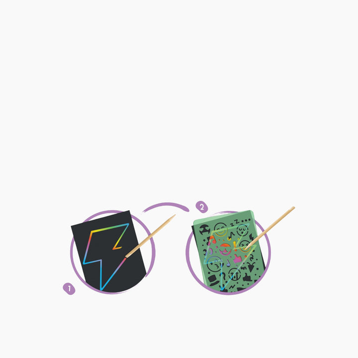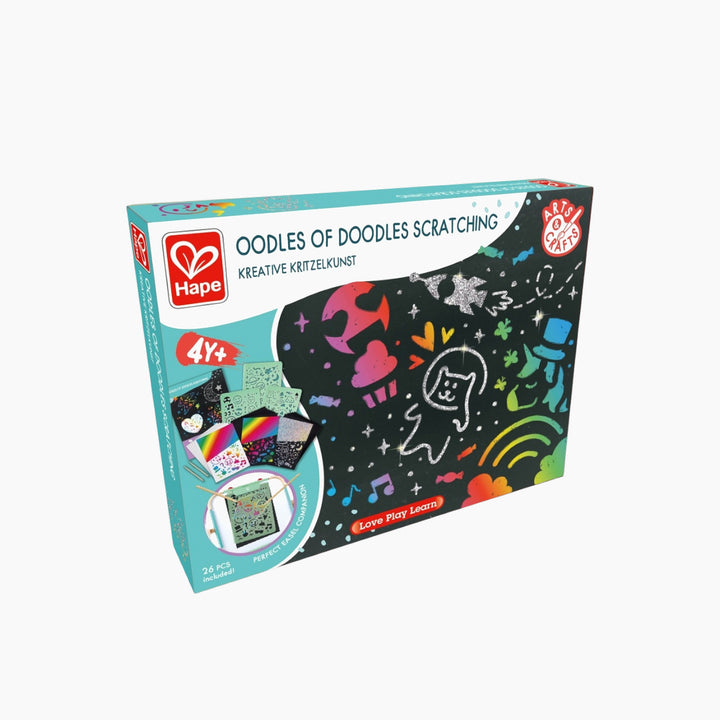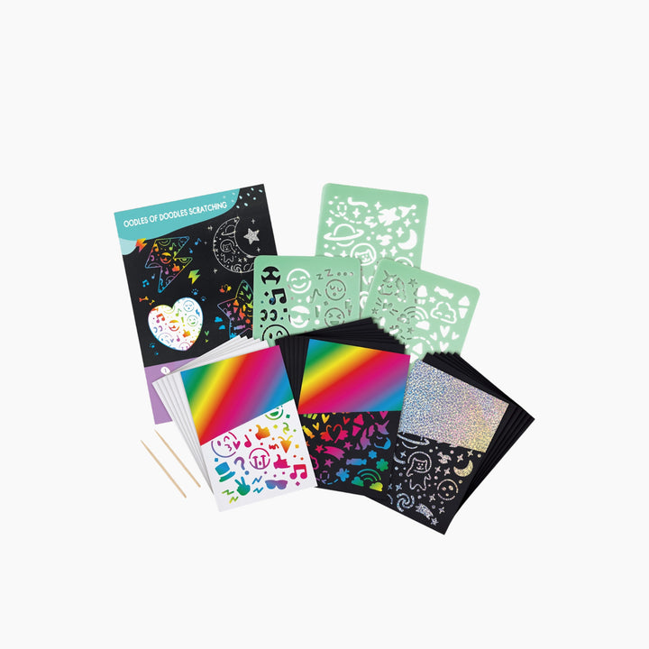 Unleash your child's creativity with the Oodles of Doodles Scratch Art Set, an innovative medium that combines art and sensory exploration. This scratch art set features black-coated sheets that reveal a burst of vibrant colors underneath, perfect for sparking imagination and enhancing artistic expression. The set includes child-safe wooden scratching tools, ensuring a safe and engaging experience for little hands.