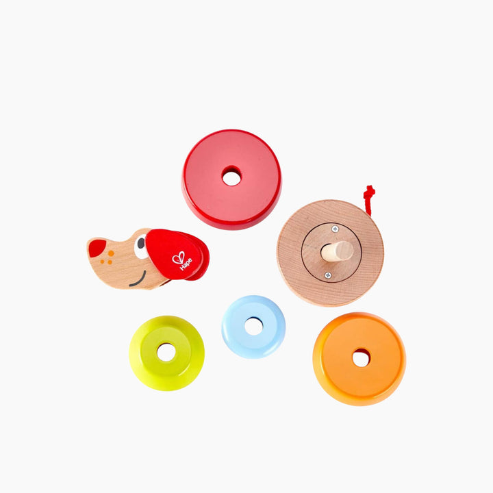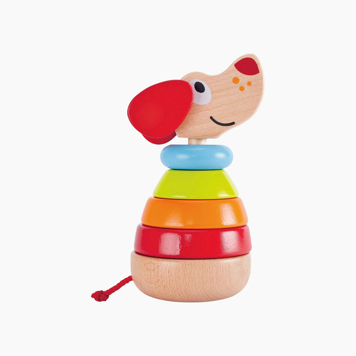 Elevate your child's playtime with this interactive wooden stacking toy, designed to captivate toddlers while enhancing their developmental skills. Shaped like an adorable dog, this toy offers a delightful blend of engaging sounds and colorful rings, encouraging sensory and auditory exploration. Crafted from premium-quality wood and painted with child-safe, water-based colors, it ensures a safe play environment for little ones. Ideal for children aged 12 months and up, this toy promotes learning through play without the need for batteries.