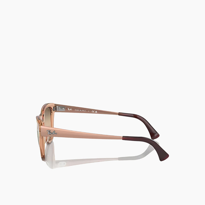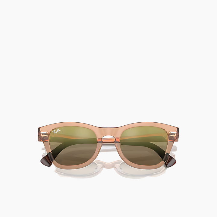 Bring a modern twist to a timeless classic. Featuring a transparent brown propionate frame with gold gradient mirror lenses, this design fuses vintage inspiration with contemporary style. The aluminum temples and keyhole bridge reflect 1960s sophistication while ensuring lightweight comfort and durability.