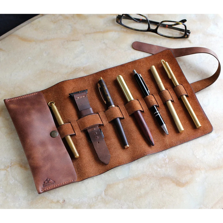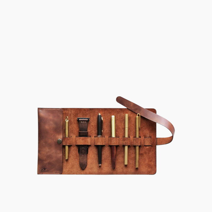 Roll Up Pen Case Perge Brown