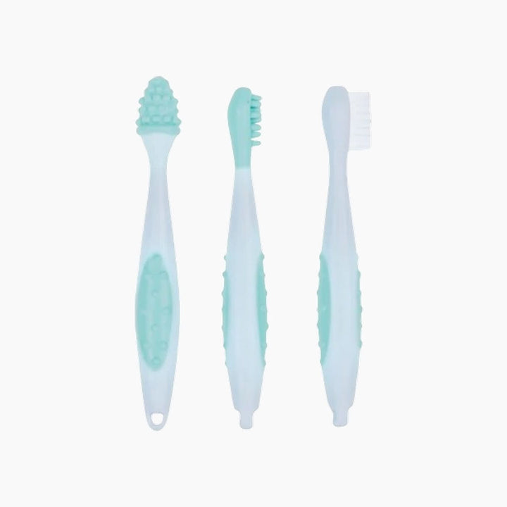 Each toothbrush in the set is tailored to your baby’s developmental milestones:
