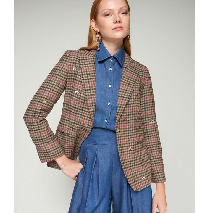 A stylish blend of classic tailoring and playful detailing. Made from 100% Tencel, it offers a soft, lightweight feel with a lightly structured finish. The shirt features a timeless silhouette elevated by vibrant embroidery and unique accents that bring personality to a wardrobe staple.
