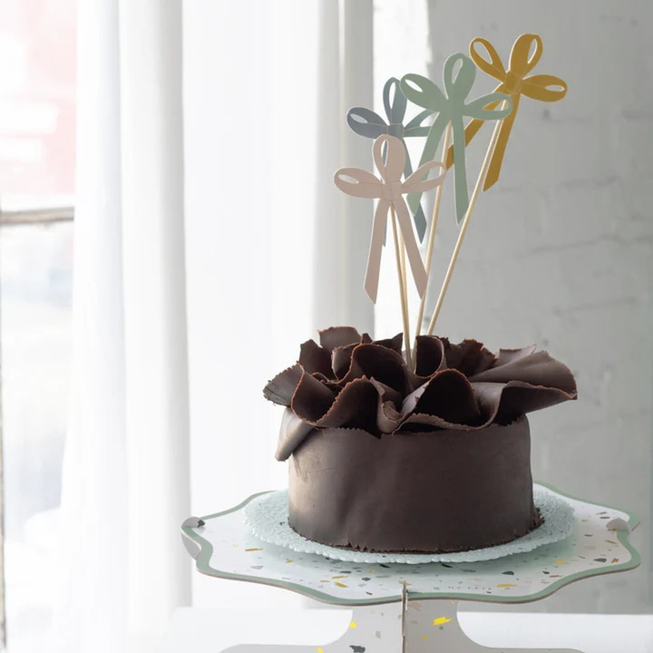 Enhance your celebration with a delightful addition to any dessert table. Designed to bring a touch of elegance and fun, these toppers feature vibrant paper ribbons in Ma Fête's signature colors, perfect for birthdays, baby showers, and other festive occasions.