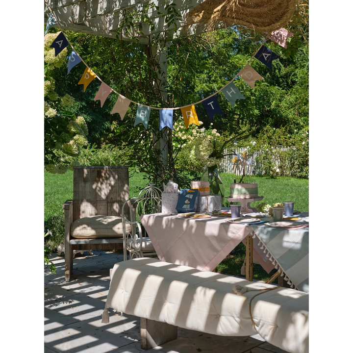 Celebrate in style with a refined, double-stitched cotton banner that brings understated elegance to any festivity. Its chic lettering and versatile design make it a timeless décor piece that effortlessly enhances your party atmosphere.