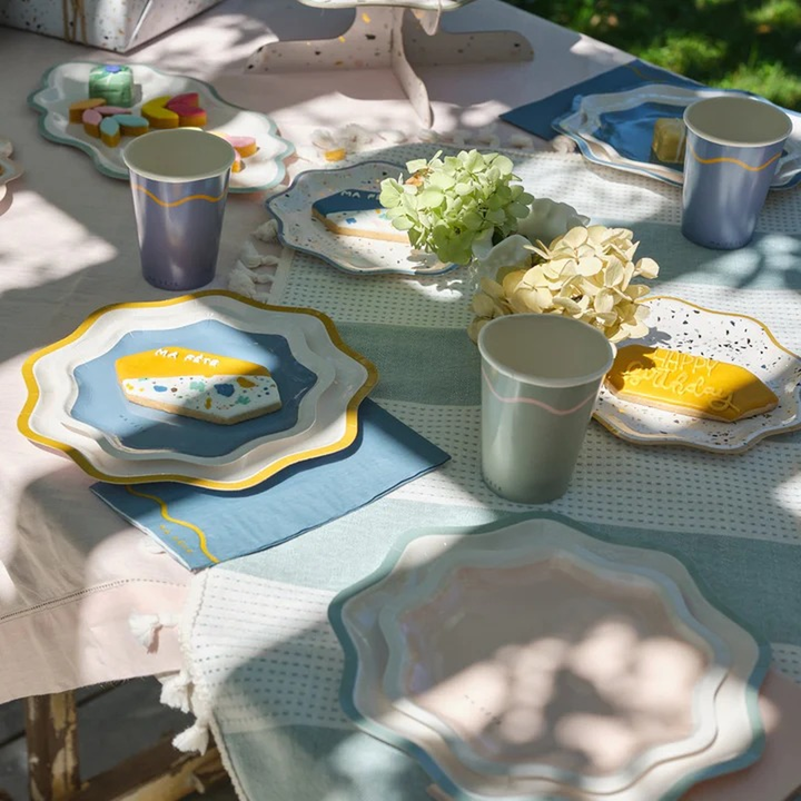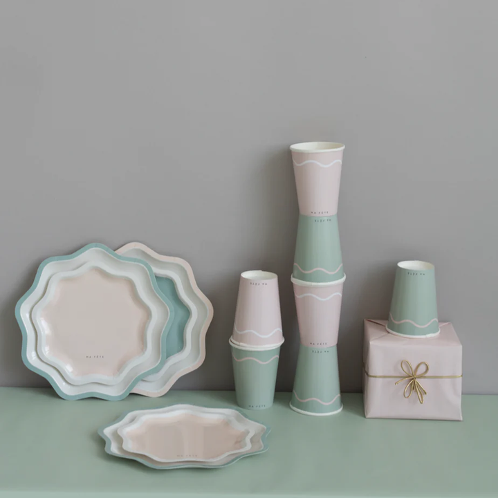Elevate any celebration, designed to add a touch of elegance and fun to your event. Available in two delightful color combinations—Pink & Mint and Blue & Yellow—these cups are perfect for birthday parties, baby showers, or any festive occasion.