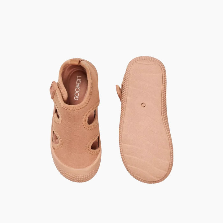 The open design enhances breathability and allows water to easily flow through, preventing soggy feet and encouraging quick drying. The water-friendly neoprene upper stretches comfortably around little feet, providing a snug fit that stays put even during active play. An easy hook-and-loop closure ensures that putting on and taking off these shoes is quick and hassle-free, perfect for busy parents and excited kids alike.
