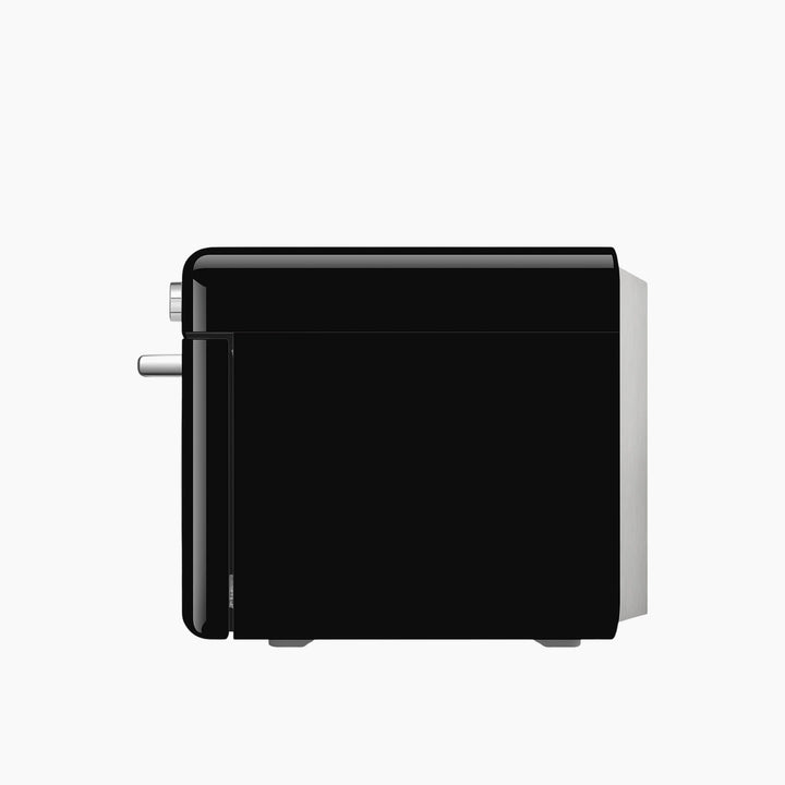 - A sleek 50’s Style aesthetic in glossy black with chrome accents adds vintage elegance to modern kitchens while offering serious cooking power.
