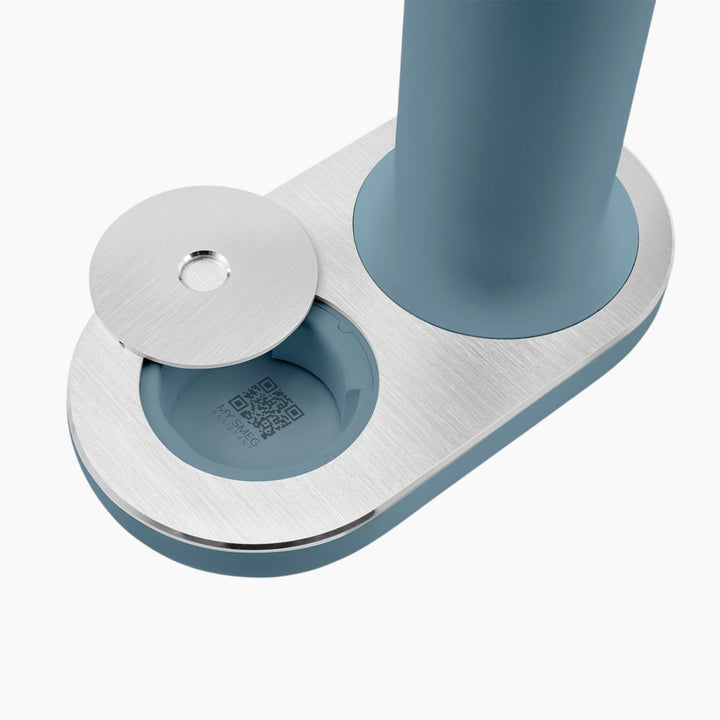 - Colour & finish: Available in matte black, matte white, or matte storm blue with satin-chrome and aluminium details.