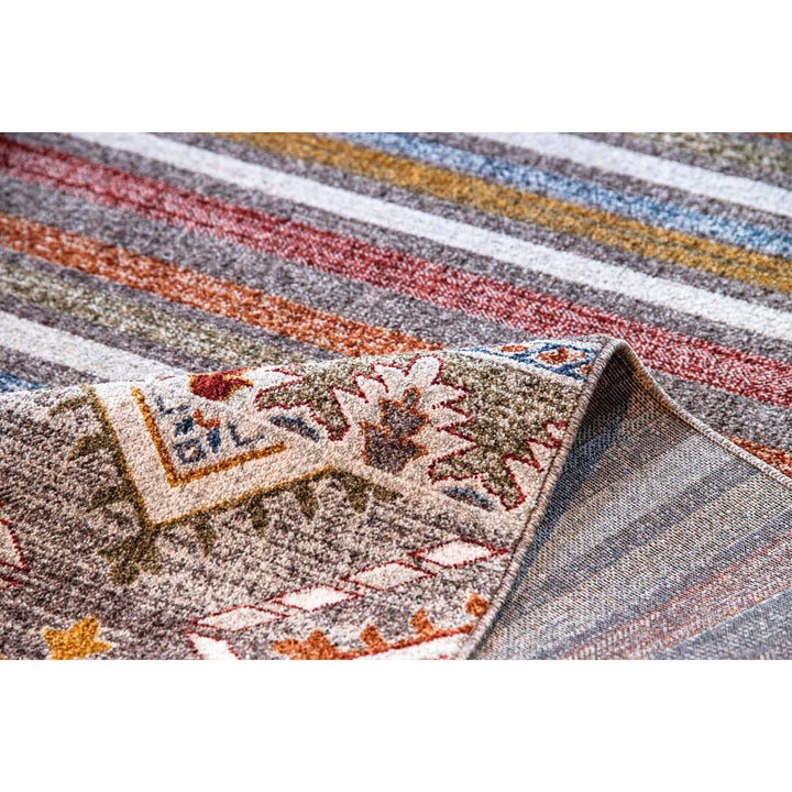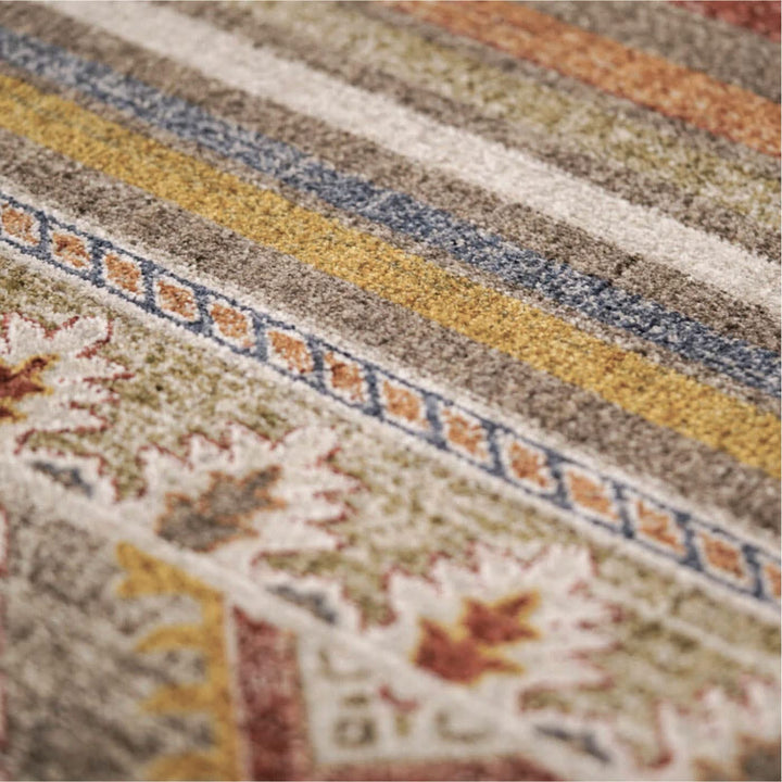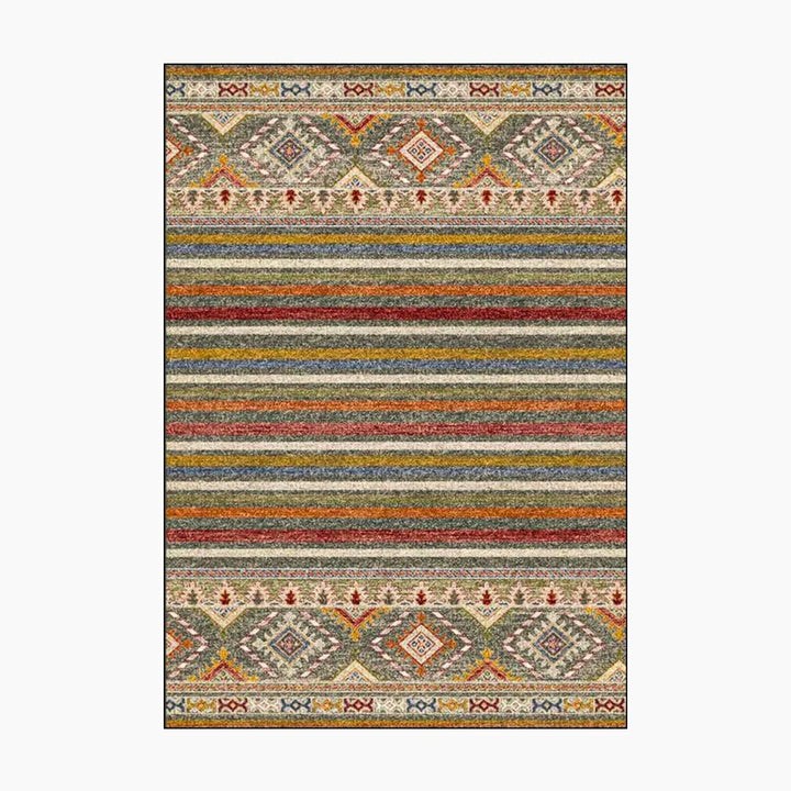 Add a touch of southwestern charm with the , featuring vibrant horizontal stripes and tribal patterns. It’s perfect for creating a warm and inviting atmosphere in any room. This rug boasts bold stripes with a tribal-inspired border, a warm color palette for cozy spaces, and high-quality fibers for durability. It is ideal for rustic and eclectic decor, and it is also easy to care for and maintain.