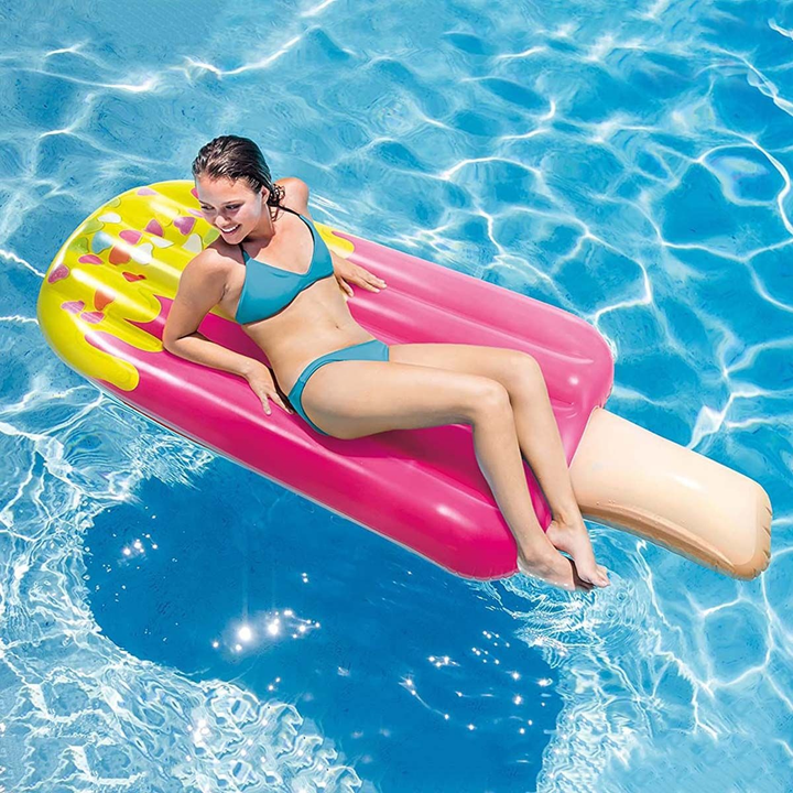 Turn any pool into a sweet escape. With its vibrant popsicle shape and playful sprinkle pattern, this inflatable float combines fun, style, and relaxation all in one design. Perfect for lounging in the sun or making a splash in style, it adds charm to summer moments.