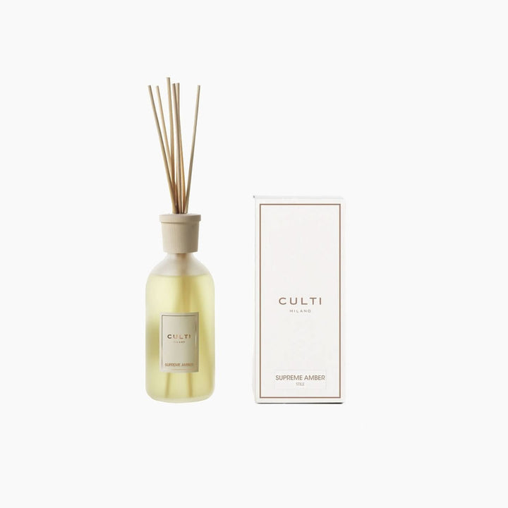 Experience an opulent fusion of scents with the Stile Classic Diffusers. These premium fragrance diffusers transform any space into a luxurious oasis, offering a variety of captivating aromas. From the invigorating blend of bitter orange, bergamot, and sandalwood to the exotic notes of incense, chinotto, and black vanilla, each diffuser promises to elevate the ambiance of a room. Perfect for creating a serene and inviting atmosphere, these diffusers are designed to suit a range of environments and preferences.