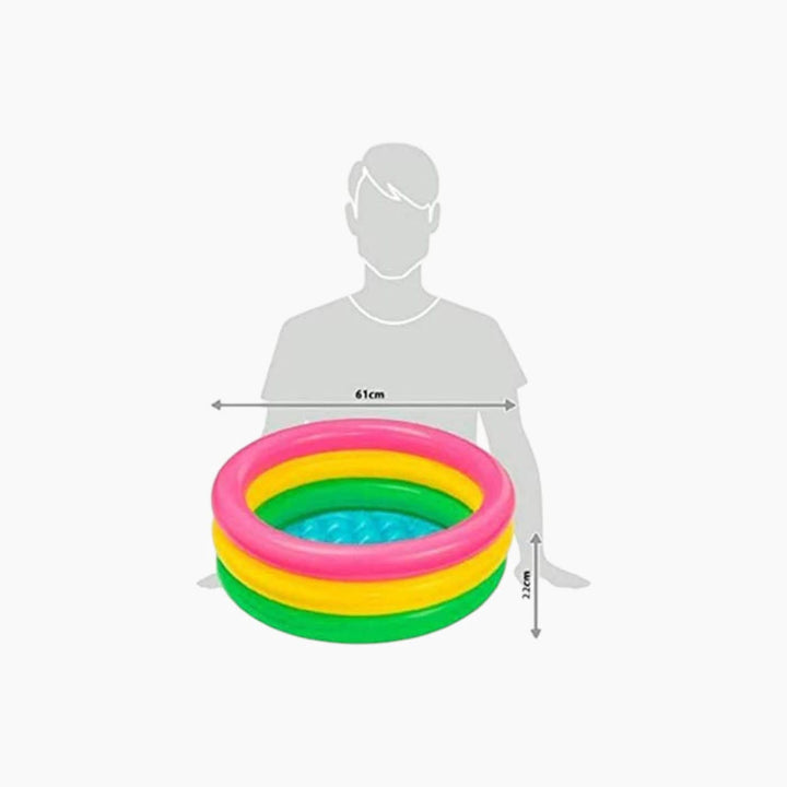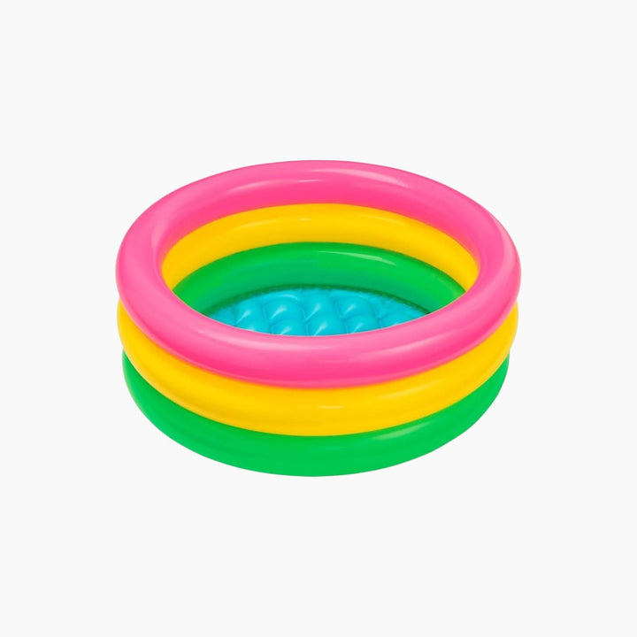 Offers a bright and cheerful way for little ones to enjoy water play safely. Designed with soft inflatable rings and vibrant sunset-inspired colors, this compact pool provides a comfortable and visually engaging environment for babies and toddlers. Perfect for sunny days in the garden or indoor fun, it delivers both entertainment and peace of mind for caregivers.