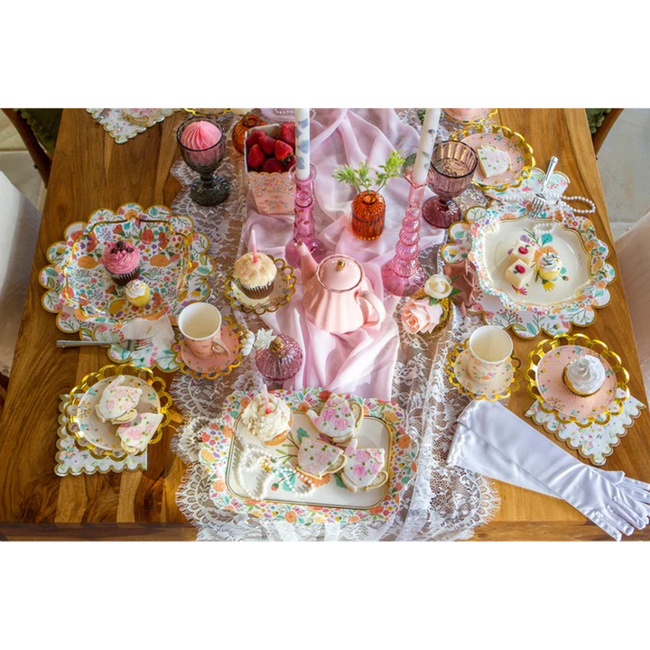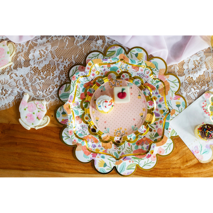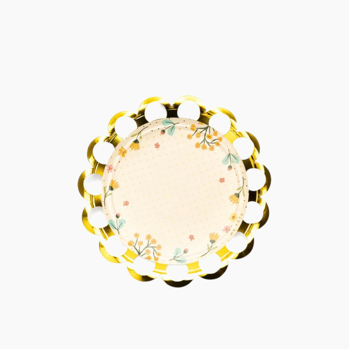 Enhance your celebration, designed to add a touch of elegance to any occasion. Featuring delicate lace edges and shimmering gold foil accents, these plates are perfect for serving desserts at tea parties, bridal showers, or any special gathering.