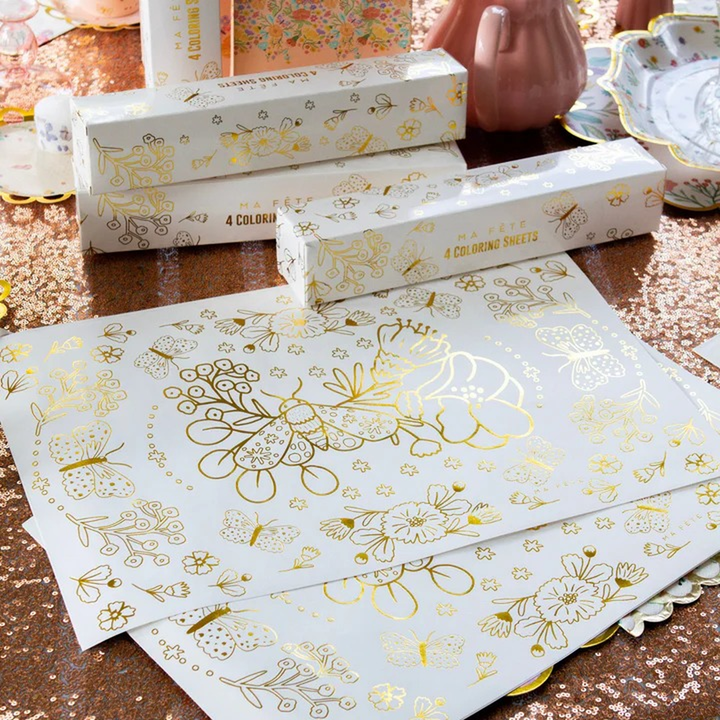 - Interactive coloring sheets with butterfly and blossom outlines, engaging guests in creative expression.
