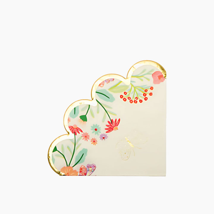 - Soft napkins with lovely flower prints, adding a splash of color and practical elegance to the affair.