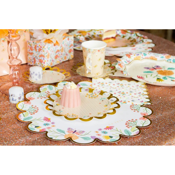 - Elegant floral and butterfly design adds a whimsical touch to any table setting.