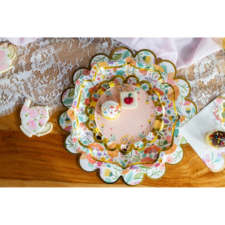 - Scalloped edges with gold foil detailing provide a sophisticated finish.