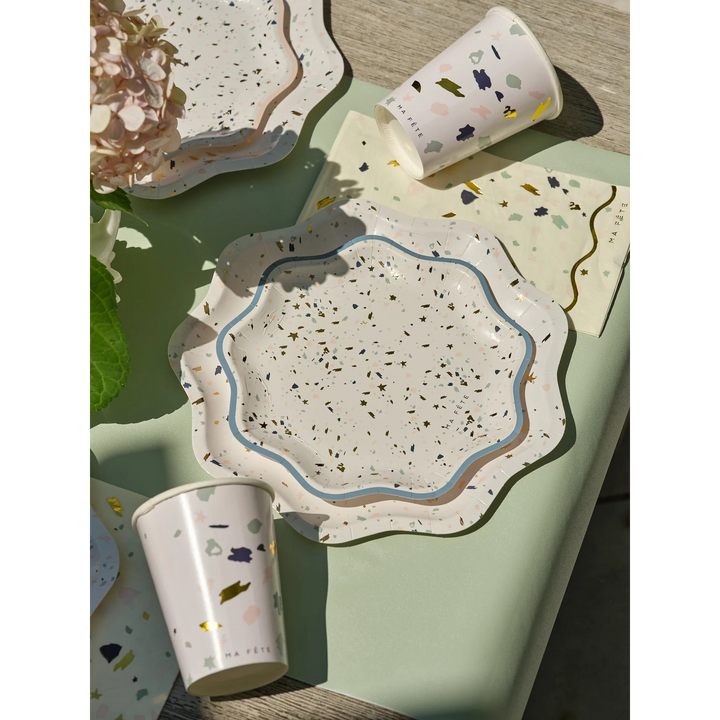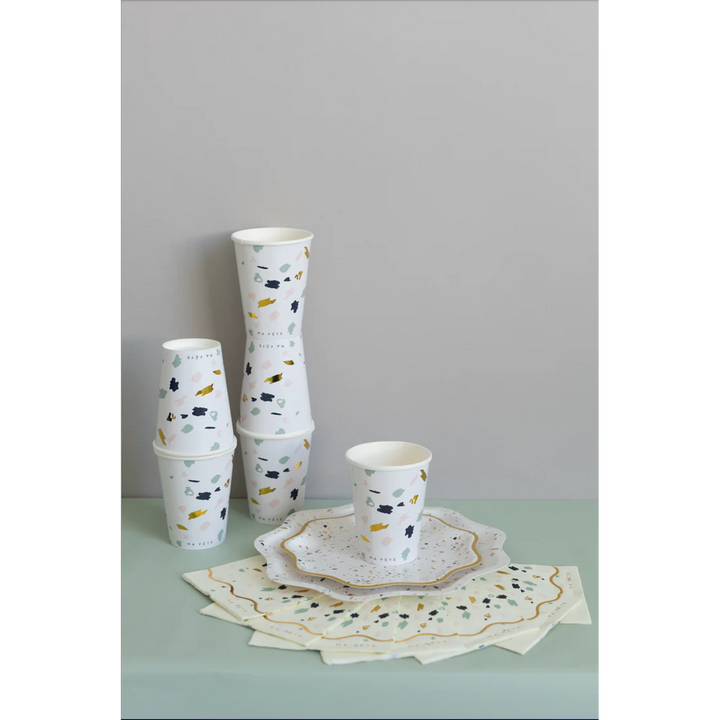 Elevate any celebration with a stylish and functional addition to your party essentials. Featuring a distinctive terrazzo pattern accented with gold foil details, these cups bring a touch of Italian chic to your event. Perfect for both casual gatherings and sophisticated soirées, they offer a blend of elegance and practicality.