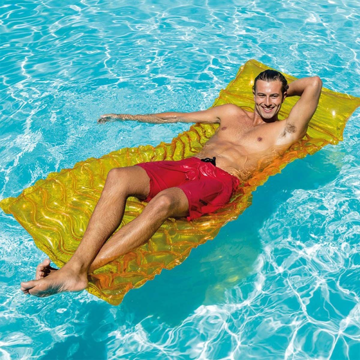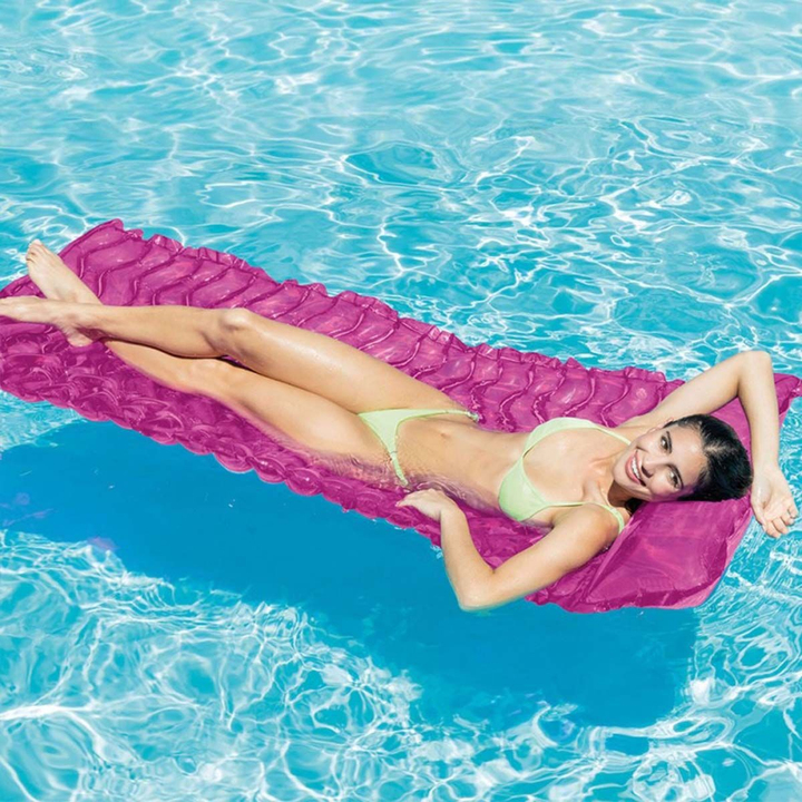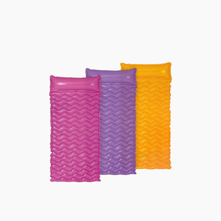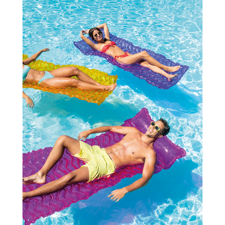 Experience effortless comfort and convenience and enjoy floating and relaxing in style. Designed with a wavy surface for better support and available in bright, eye-catching colors, this inflatable mat brings fun and function together for the perfect summer experience. Its lightweight design and included tote feature make it easy to carry anywhere your pool days take you.