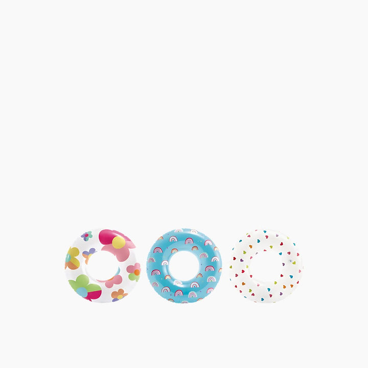 - Type: Inflatable swim tube with whimsical prints